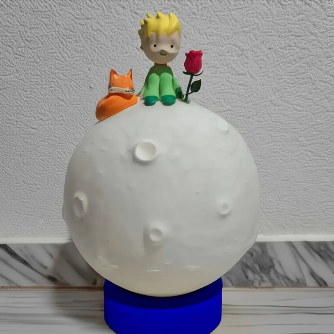 Con cada detalle cuidadosamente esculpido, esta lámpara no solo ilumina tu espacio, sino también cuenta una historia. El pequeño planeta tiene un acabado realista que resalta la conexión entre el Principito y su universo. La rosa, símbolo de amor y cuidado, está meticulosamente representada, mientras el zorro, símbolo de amistad, añade una cálida presencia. Además, el diseño compacto la hace ideal para escritorios, mesas de noche o rincones especiales.