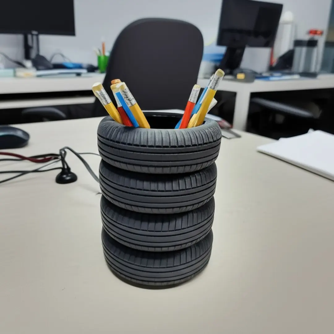Sienta las llantas apiladas en tu escritorio y deja que este ingenioso accesorio automotriz destaque entre los objetos cotidianos. Ya sea para trabajar, decorar, o simplemente sorprender, esta lapicera ofrece una mezcla perfecta de funcionalidad y estilo.